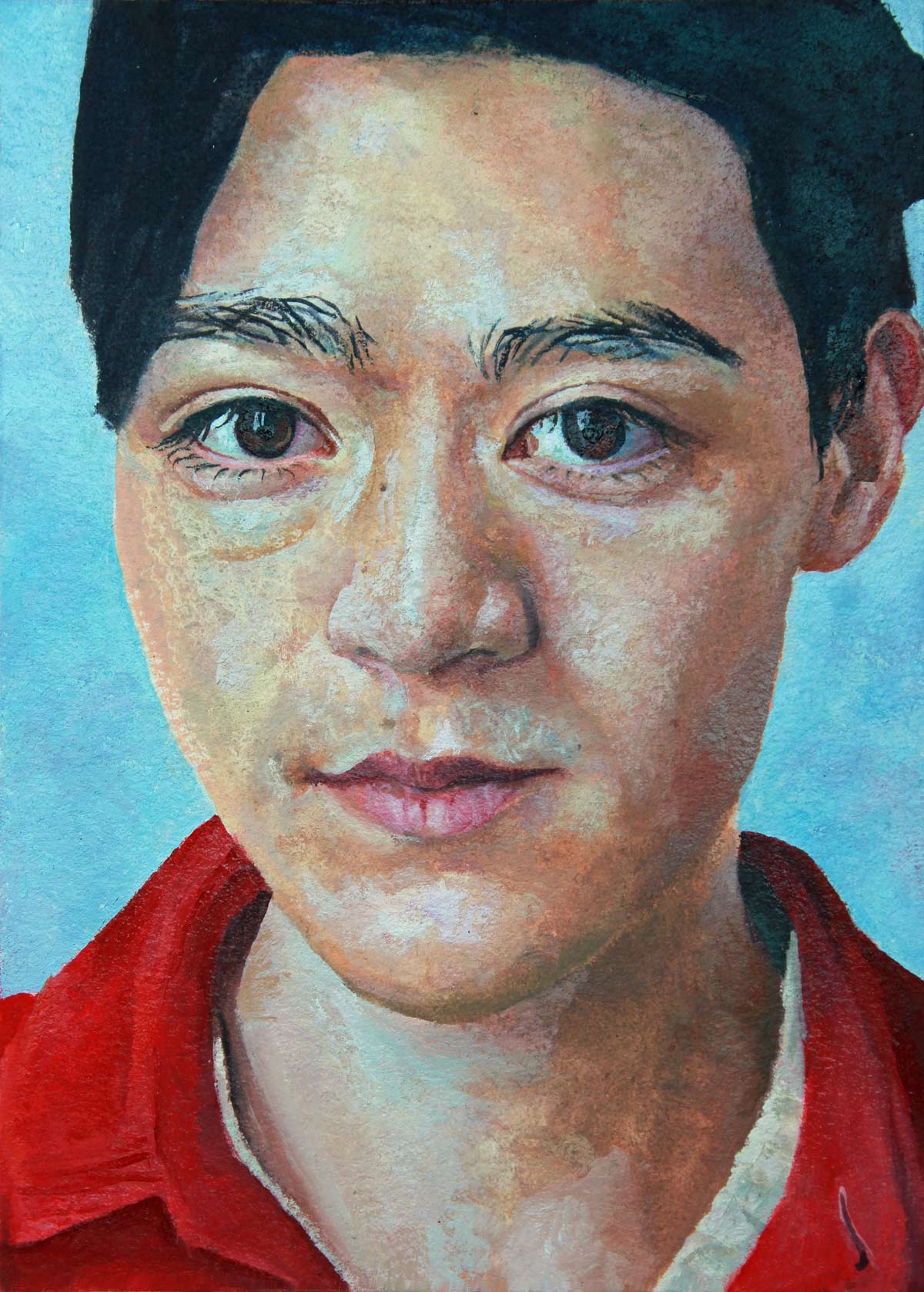 This is a postcard-sized portrait of Seonghoon Kim, an Alexander Technique teacher from South Korea, who visited the A.T Teacher Training School in Totnes in the UK in 2024.
